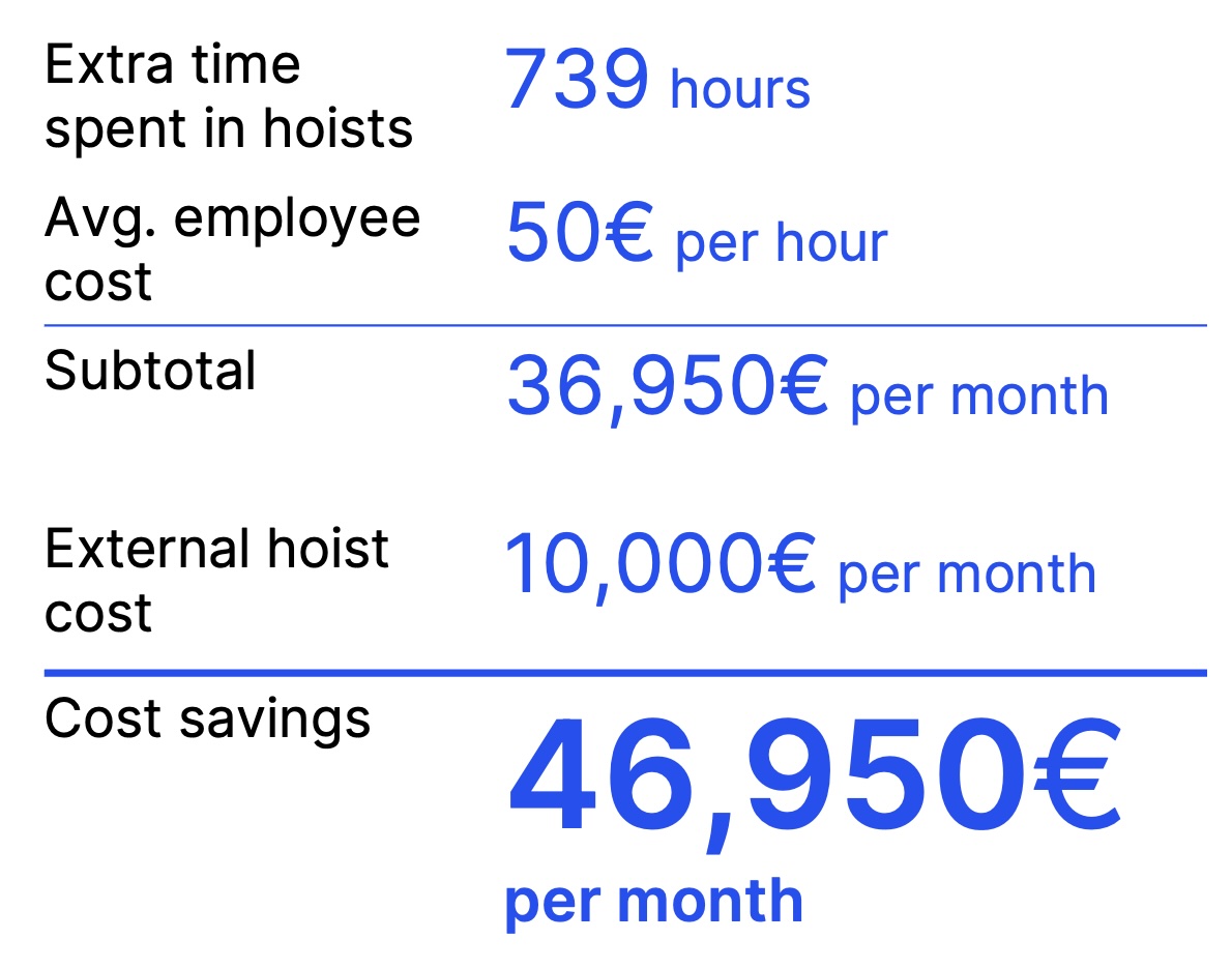 - Customers can save up to €1,126,800 euros for a 28-storey building in Europe in terms of time-spend.